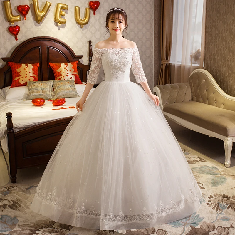 Us 37 14 31 Di Sconto Lamya Della Principessa Plus Size Abito Da Sposa Con Maniche Di Pizzo Con Scollo A Barchetta 2017 Delle Donne Abito Di Sfera