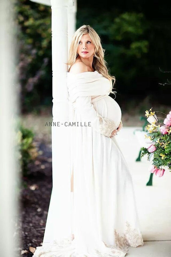 Maternità Abito Da Sposa Con Maniche Abito Da Sposa Invernale Abito Di Maternità Invernale Maternità Natale Abito Bianco Maternità Camicia