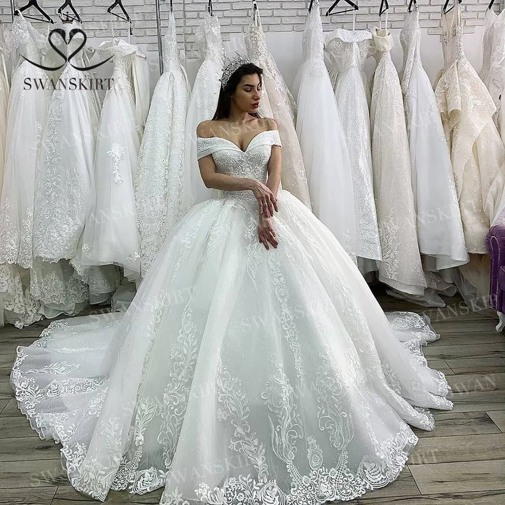 Us 371 19 36 Di Sconto Abito Da Sposa Di Lusso 2019 Della Principessa Swanskirt Appliques In Rilievo Lace Up Abito Di Sfera Cappella Treno Abito Da