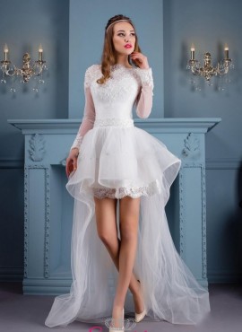 Vestiti Da Sposa Corti Davanti E Lunghi Dietro Economici 2017 Gonna Removibile