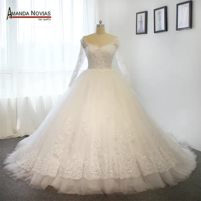 Palloncino Scolloa Barchetta Maniche Lunghe A Terra Tyll Abiti Da Sposa Con Pizzo