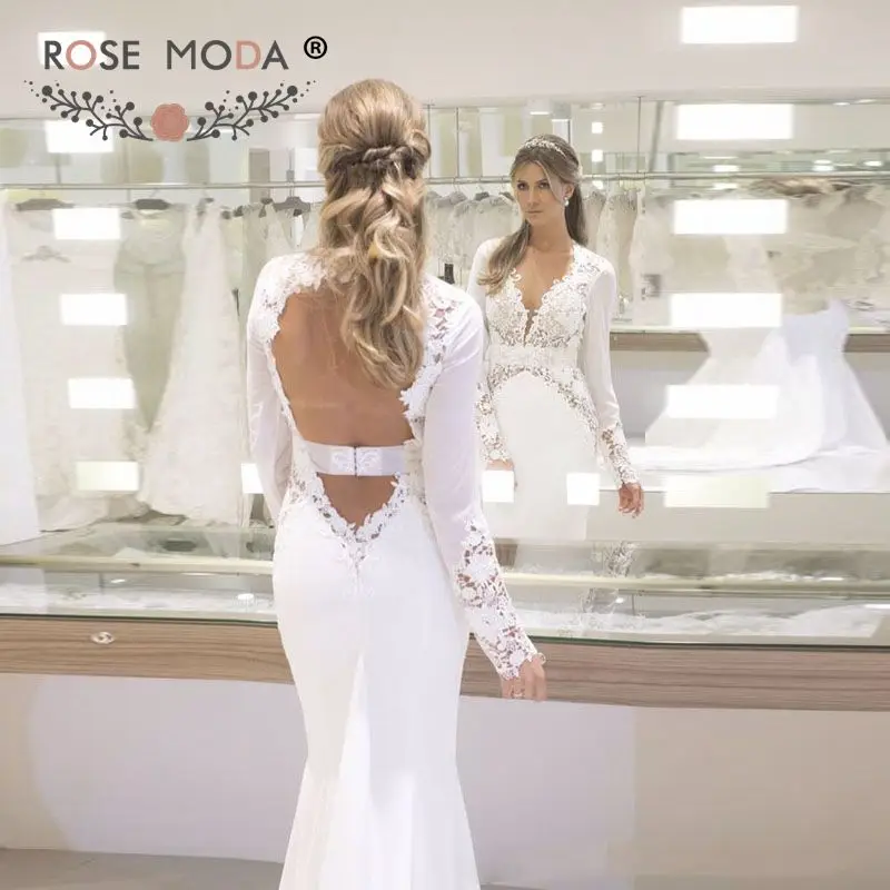Us 214 97 17 Di Sconto Rosa Moda Maniche Lunghe Guaina Abito Da Sposa 2019 Backless Boho Abiti Da Sposa Con Pizzo In Abiti Da Sposa Da Matrimoni E