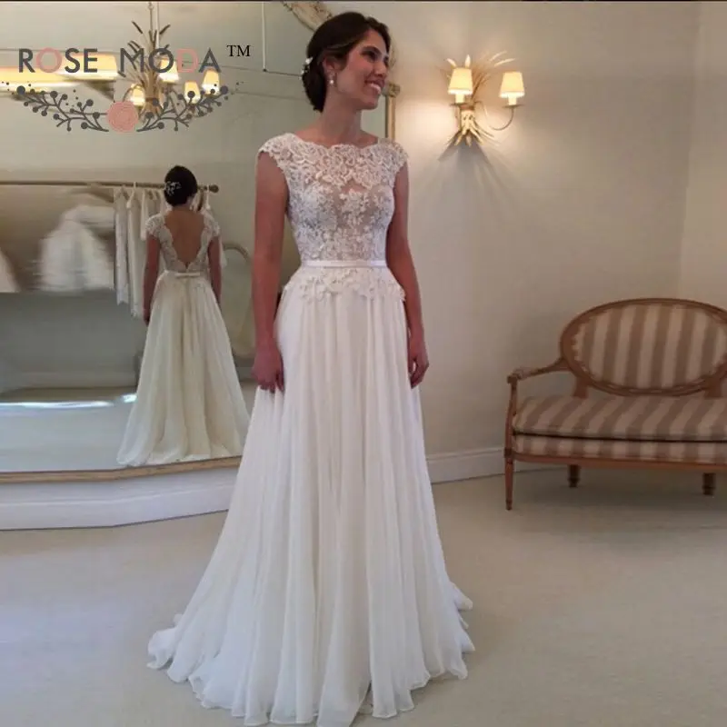 Us 229 0 Rosa Moda Cap Maniche Spiaggia Abito Da Sposa 2019 Backless Destinazione Abiti Da Sposa Con Pizzo In Abiti Da Sposa Da Matrimoni E Eventi