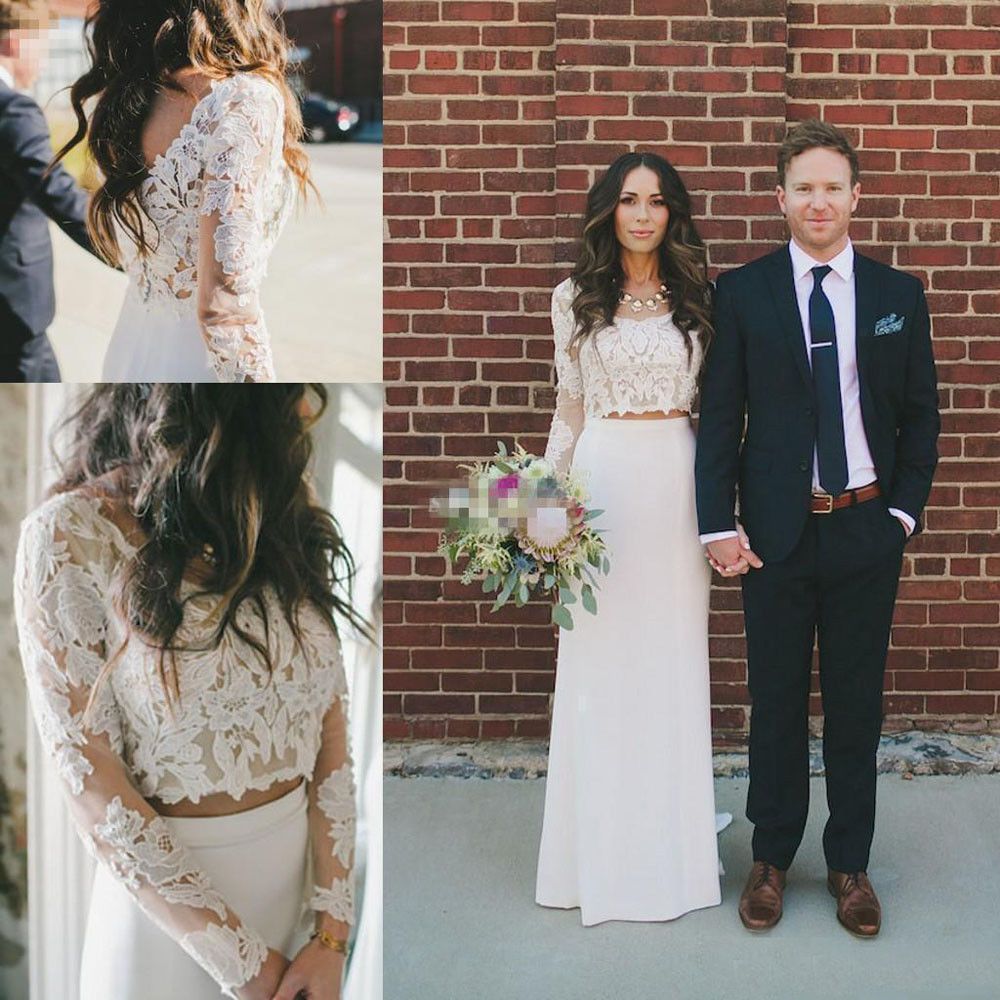 Us 139 0 Da Sposa Due Pezzi Abito Da Sposa Applique Illusion Maniche Lunghe Sheer Lace Crop Top In Raso Gonna Lunga 2 Pezzi In Abiti Da Sposa Da
