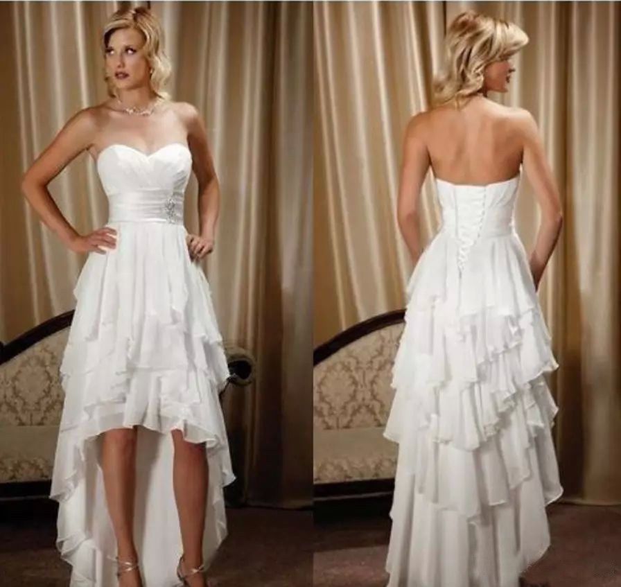 Discount Vestito Da Sposa 2018 Simple High Low Beach Wedding Dresses White Strapless Sleeveless Formal Bridal Gowns For Girl S Weding Custom Made Red