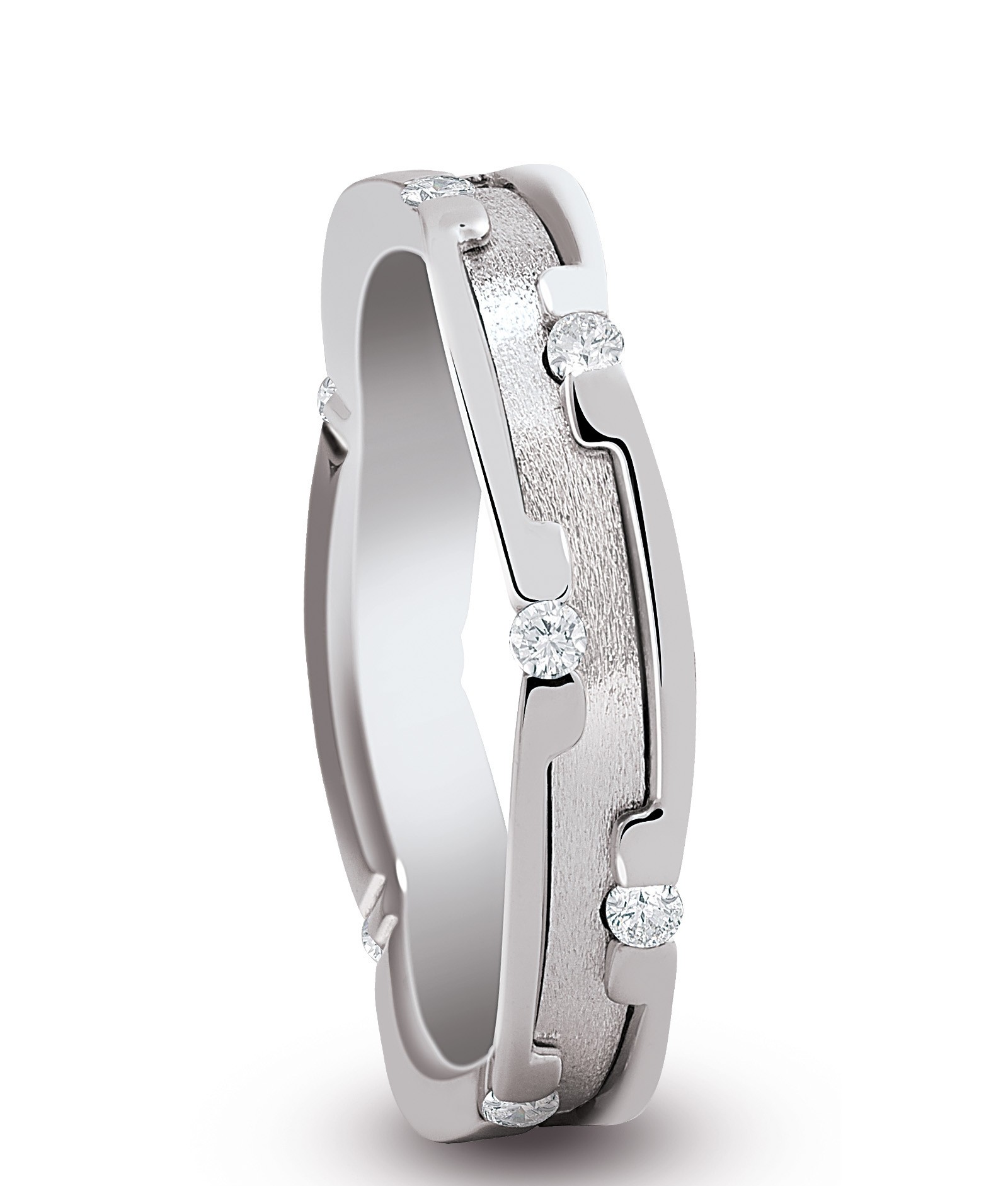 Fede Matrimoniale Artlinea Greca Oro Bianco 18kt E Diamante Kt 0 18