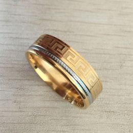 Luxury Gioielli Unisex 316 Di Titanio Dell Acciaio 18k Placcato Oro Giallo Anello Chiave Greco Wedding Band Uomo Donna Silver Gold 2 Colori
