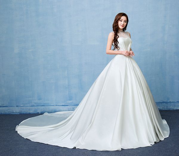 Acquista Nuova Sposa Di Lusso In Raso Abito Da Sposa Abito Da Sposa Grande Studio Coda A 160 81 Dal Weddingsbeen Dhgate Com