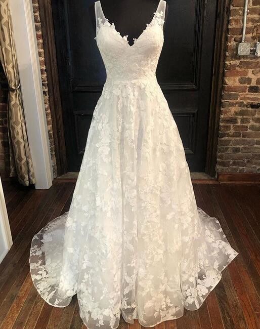 Abito Da Sposa A Line Principessa Schiena Tulle Pizzo Okmi It