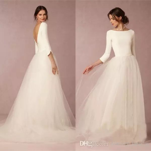 Acquista Abiti Da Sposa Inverno Modesto Economici Una Linea Di Raso Top Backless 2019 Abiti Da Sposa Con Maniche Design Semplice Morbido Tulle Gonna