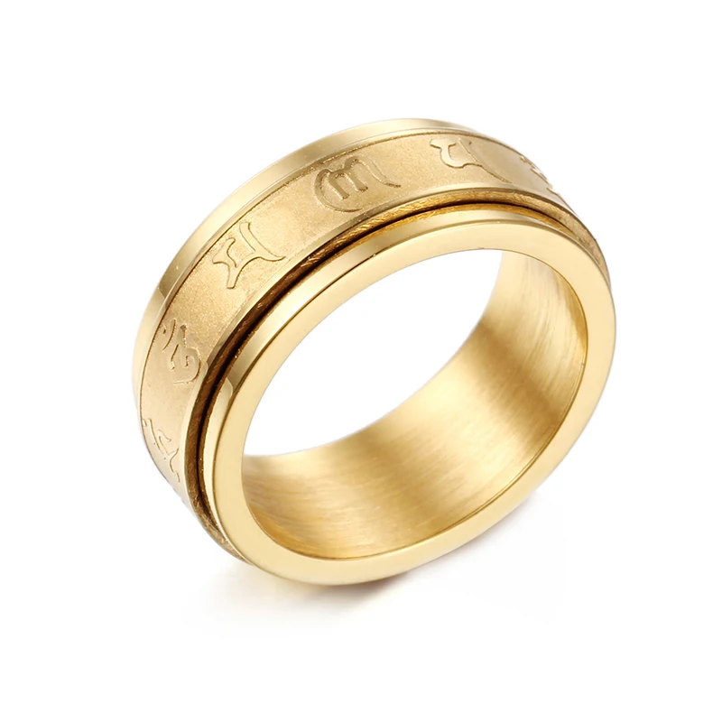 Aienid Anelli In Acciaio Inossidabile Sutra Buddista Del Cuore Oro Fede Nuziale Per Gli Uomini