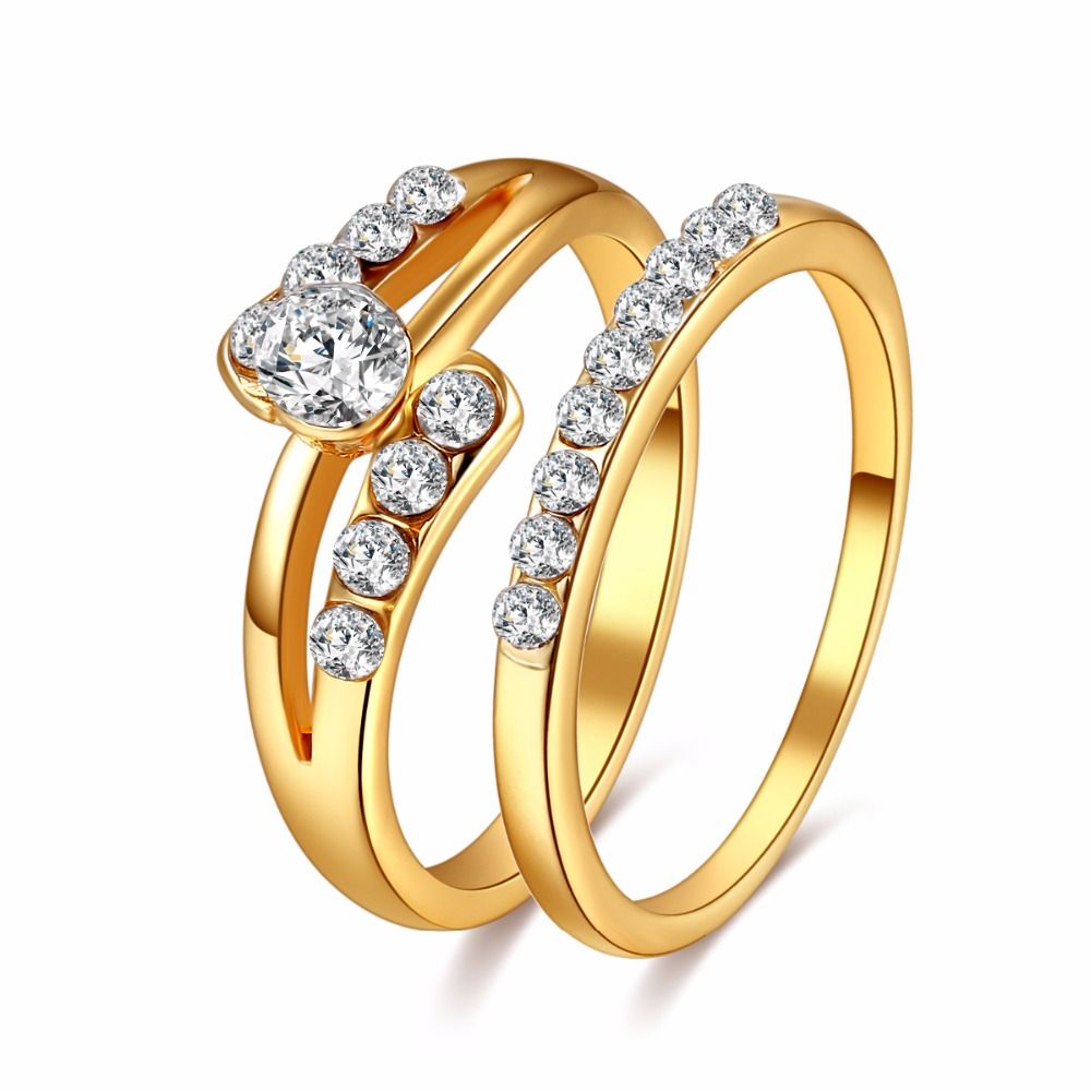 2019 Cacana Wedding Ring For Lovers Gold Color Zircon Couple Rings Set Men Women Engagement Wedding Ring From Haroln 22 12 Dhgate Com