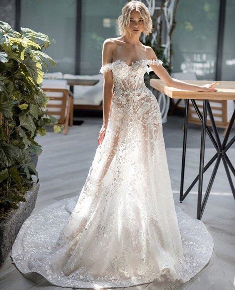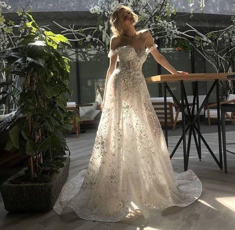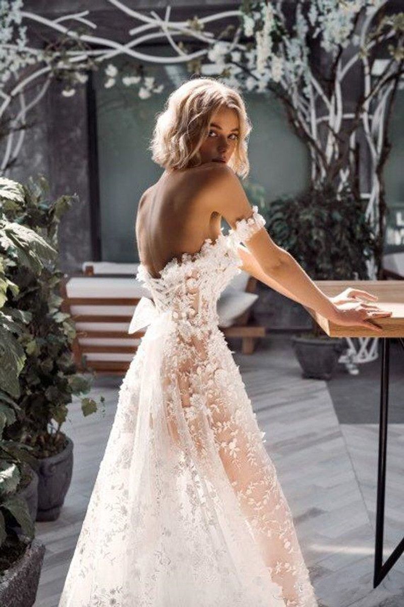 Sexy Off Shoulder Lace Wedding Dresses 3d Appliqued Backless Boho Wedding Bridal Gowns A Line Bohemian Beach Wedding Dress Abiti Da Sposa Halter Top